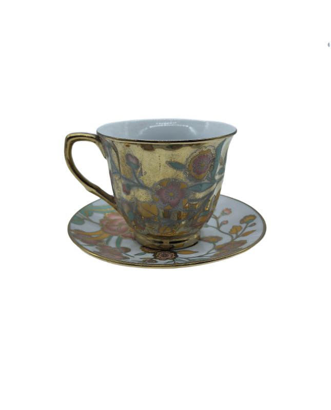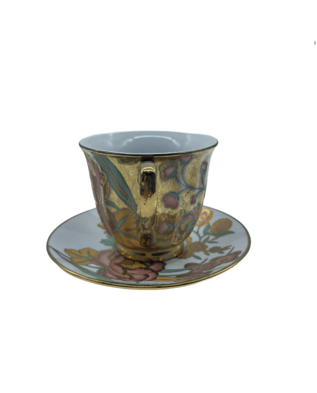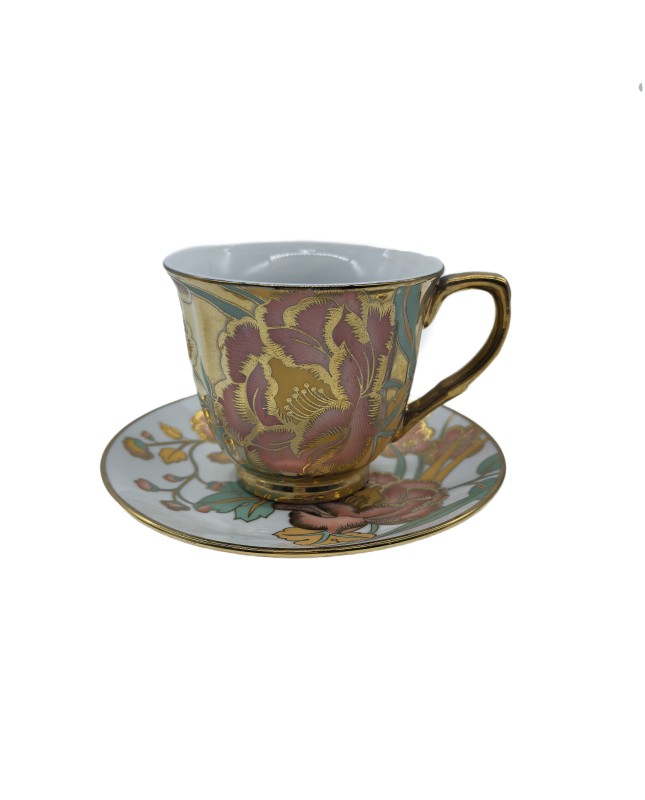 Gold Porcelain Tea Cup And Saucer Set,Peony Coffee Cup With Gold Rim