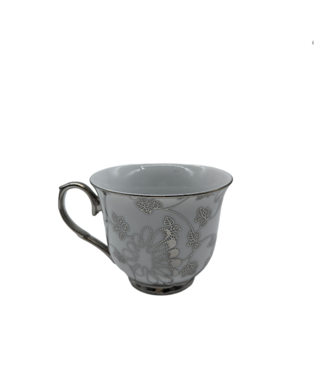Silver Vine Porcelain Tea Cup,Coffee Cup With Silver Rim