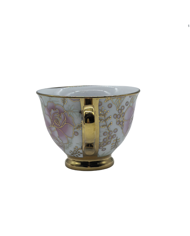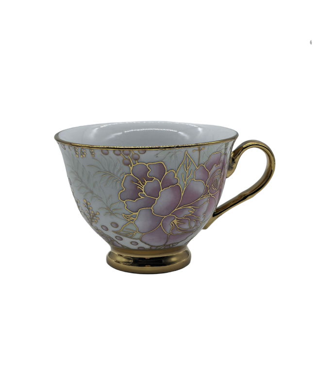Purple Flower Porcelain Tea Cup,Coffee Cup With Gold Rim