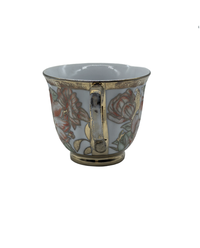 Red Flower Porcelain Tea Cup,Coffee Cup With Gold Rim