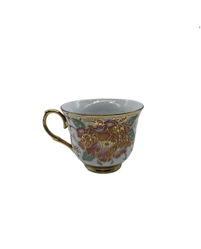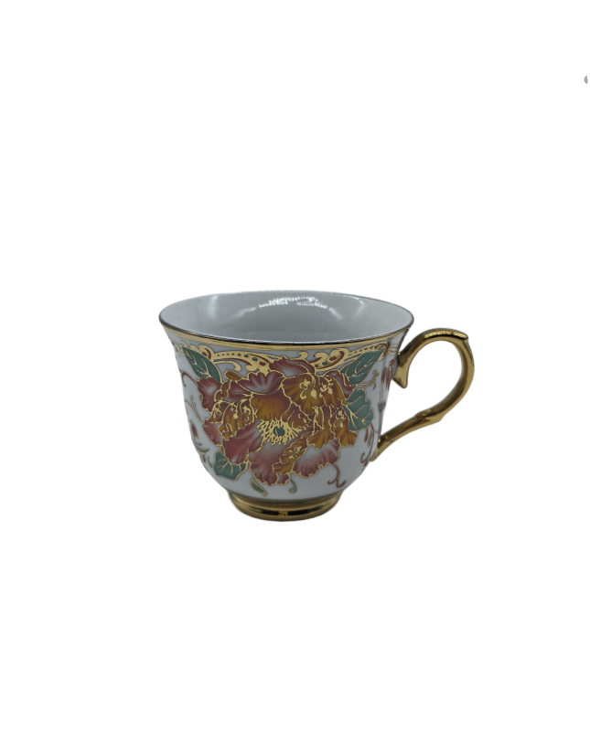 Peony Porcelain Tea Cup,Coffee Cup With Gold Rim