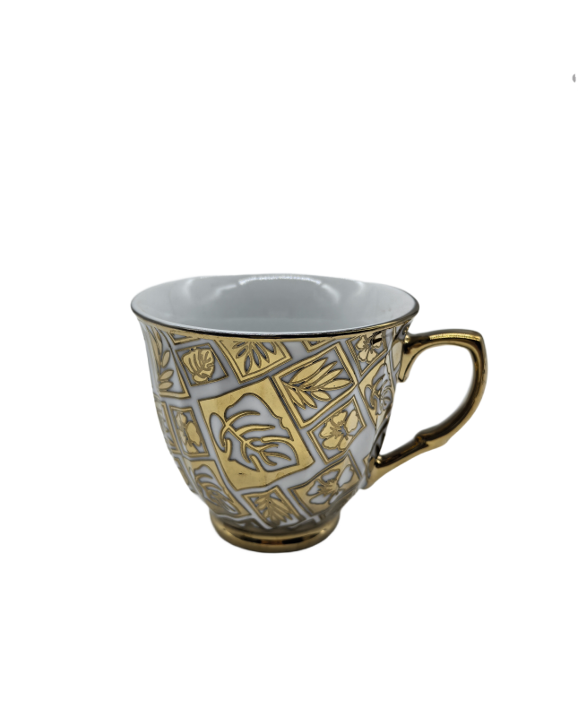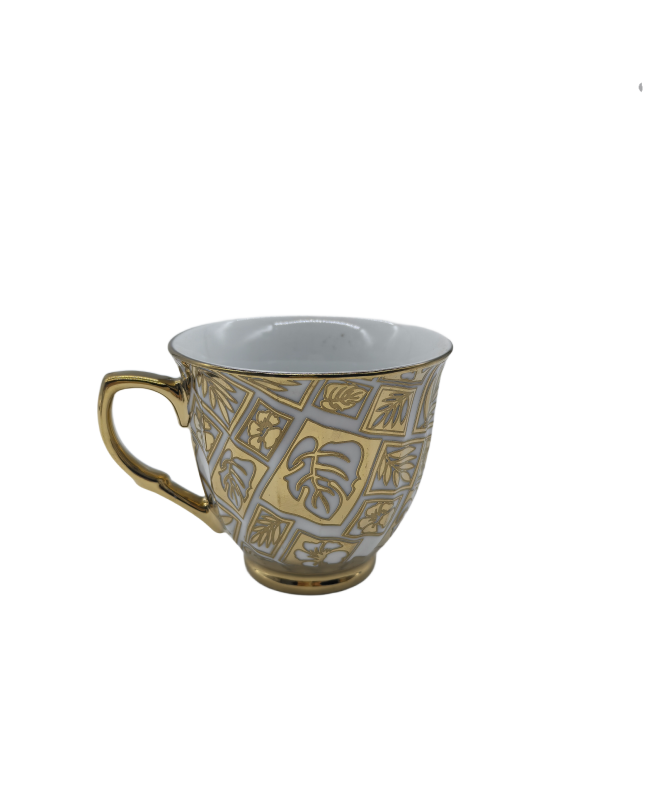 Tropical Leaf Porcelain Tea Cup,Coffee Cup With Gold Rim