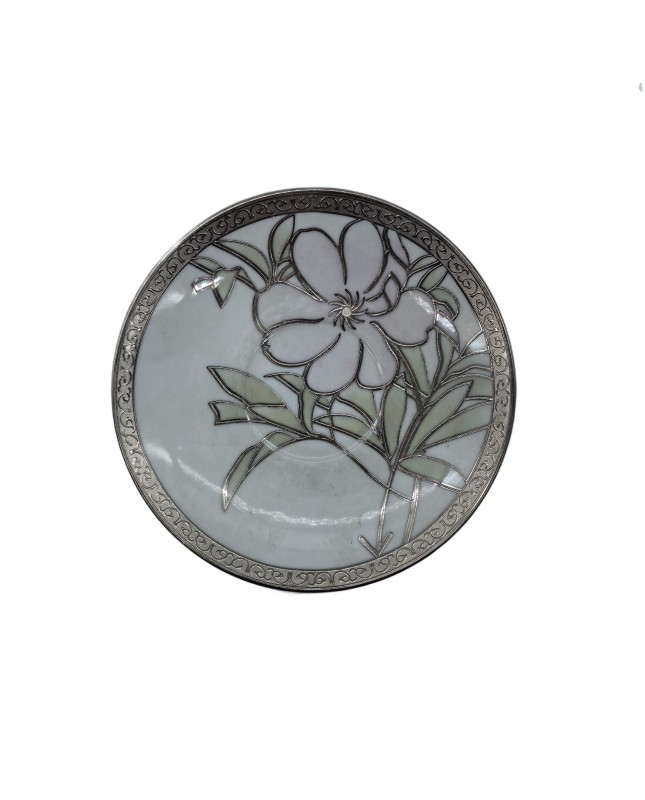 Pink Flower Porcelain Saucer With Silver Rim,Plate For TeaCups