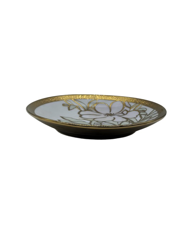 Pink Flower Porcelain Saucer With Gold Rim,Plate For TeaCups