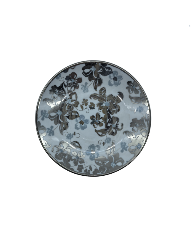 Silver Flower Porcelain Saucer With Silver Rim,Plate For TeaCups
