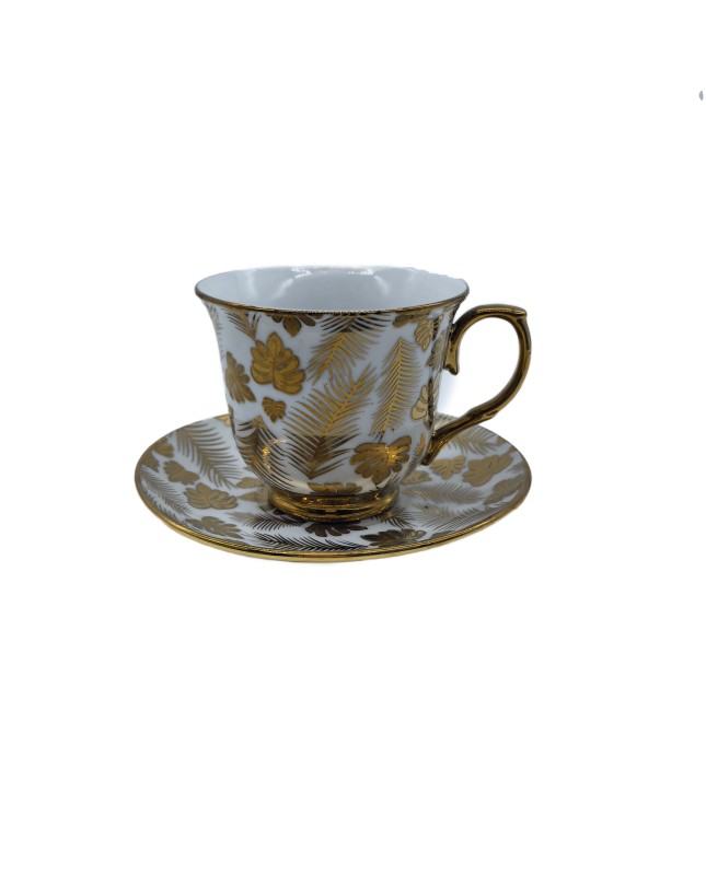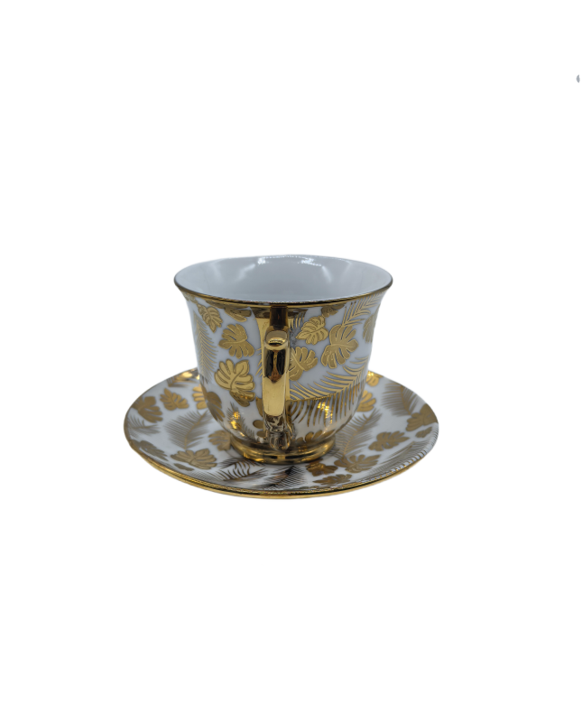 Gold Leaf Porcelain Tea Cup And Saucer Set,Coffee Cup With Gold Rim